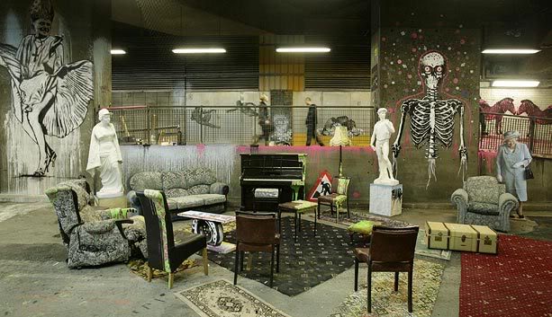 Cans Festival is a forum where all the street artists showcase their works including Banksy Graffiti. The Cans Festival, a three-day street party of stencil art, kicks off yesterday in an old tunnel formerly Used by taxis, the which was vacated Pls Eurostar left its Waterloo terminal in London.